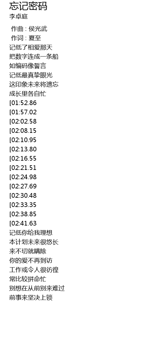 | [00:51.61][02:08.15][03:04.02] | 看密码消失之后 |
