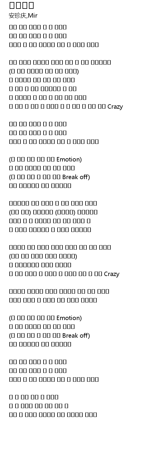 나 정말 왜 이래 내 가슴이 또 왜 이래 또 너만 찾아 Crazy |