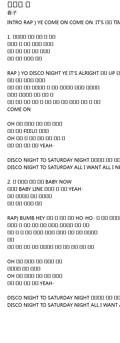 RAP ) YO DISCO NIGHT YE IT'S ALRIGHT 기분 UP 되는 흥겨운 이 리듬에 빠져 나도 모르게 흔드는 |