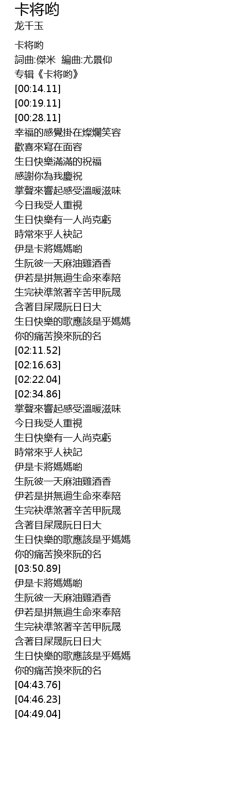 | [03:03.63] | 伊是卡將媽媽喲 |