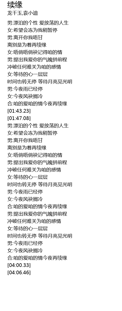 | [00:39.37] | nǚ: xī wàng huì dòng wèi wǒ shāo zàn tíng |