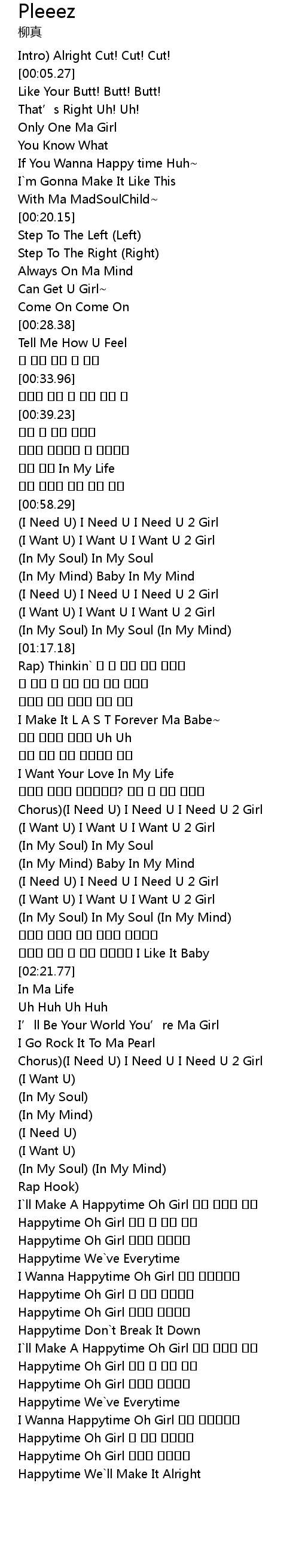 | [00:59.21] | I Need U I Need U I Need U 2 Girl |