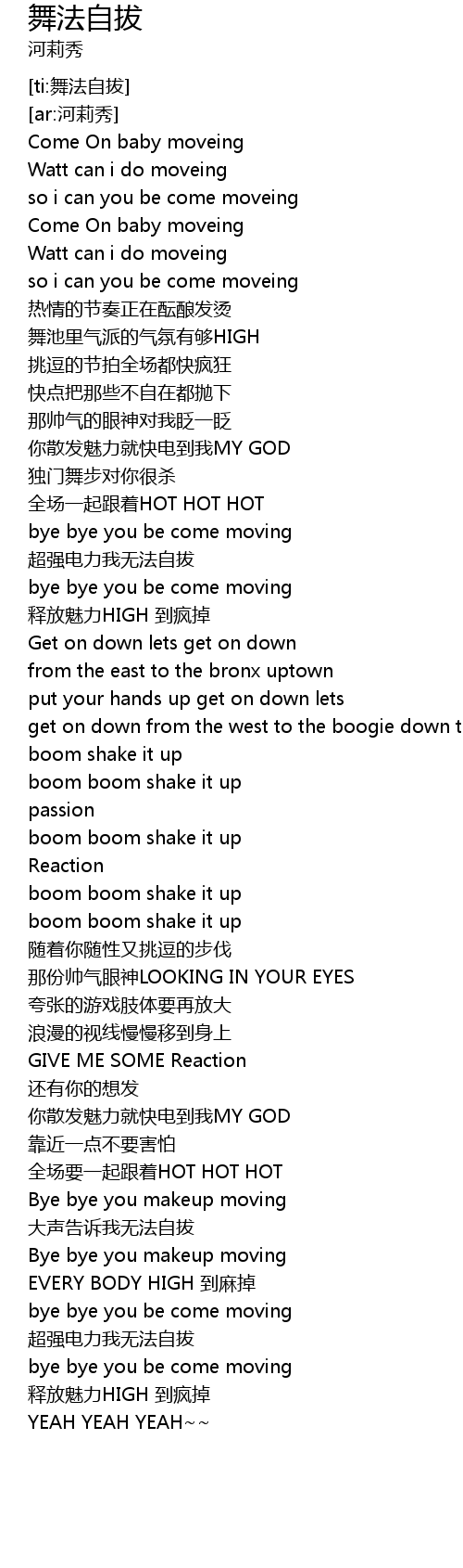 | [02:40.184] | nǐ sàn fà mèi lì jiù kuài diàn dào wǒ MY GOD |