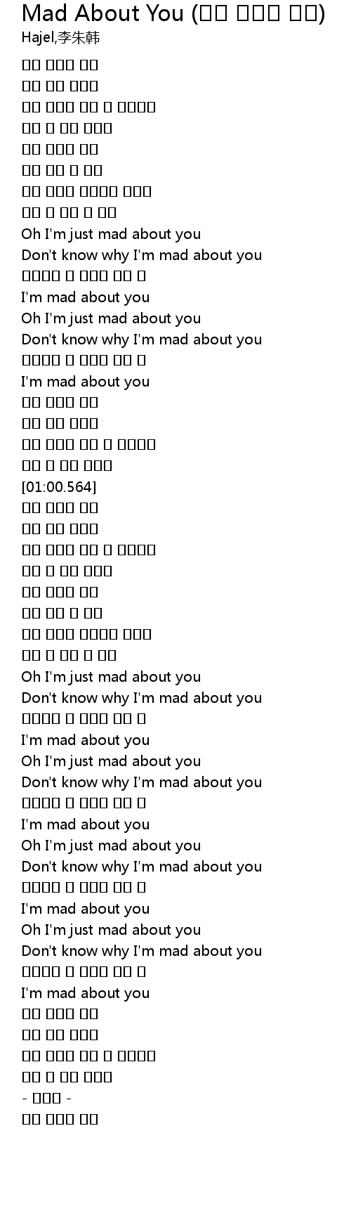 | [00:31.222] | Don' t know why I' m mad about you |