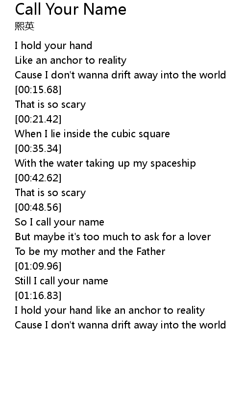 | [02:02.71] | I hold your hand like an anchor to reality |