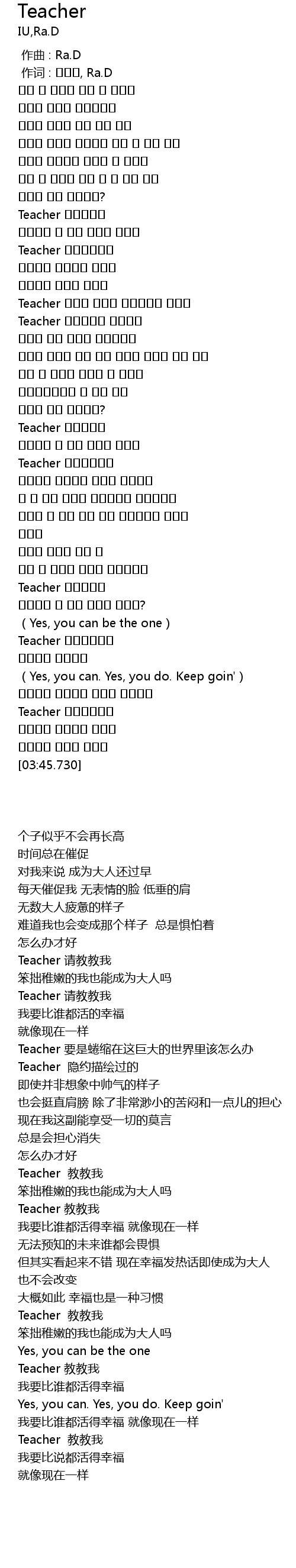 | [00:01.00] | 作词 : 아이유, Ra.D |