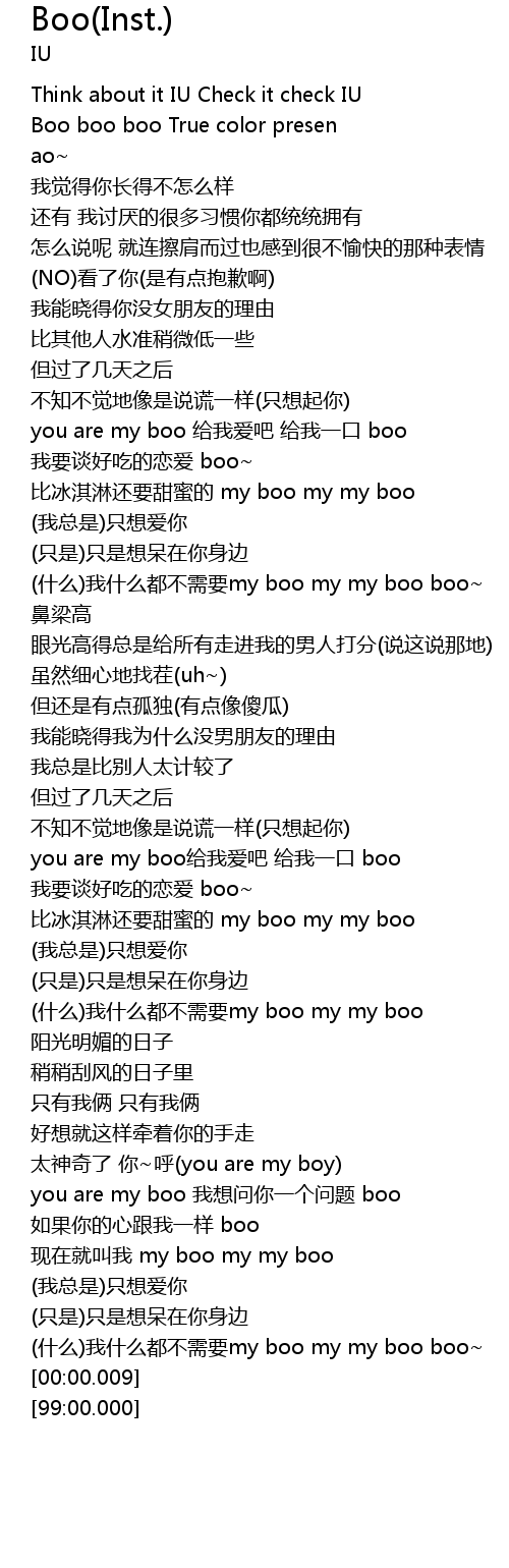 | [02:47.62] | you are my boo 我想问你一个问题 boo |