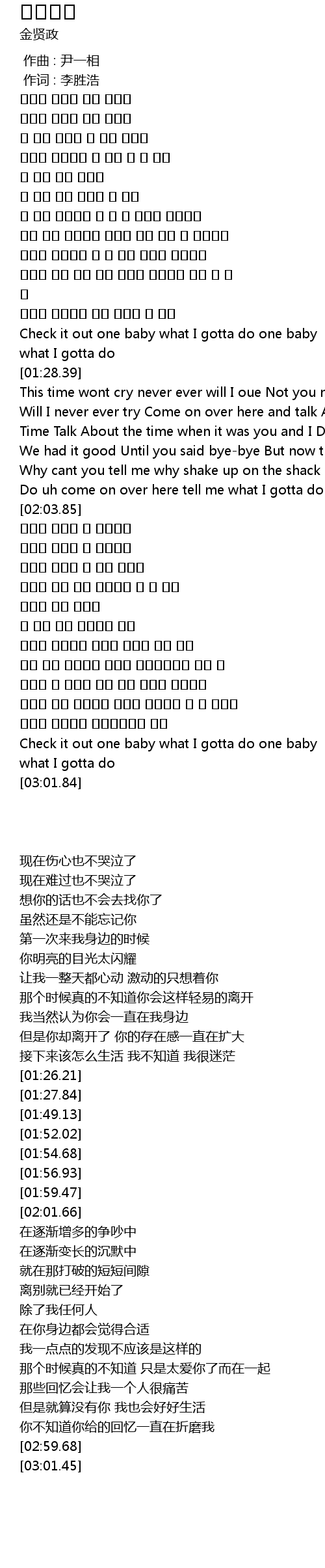 | [00:01.00] | 作词 : 李胜浩 |