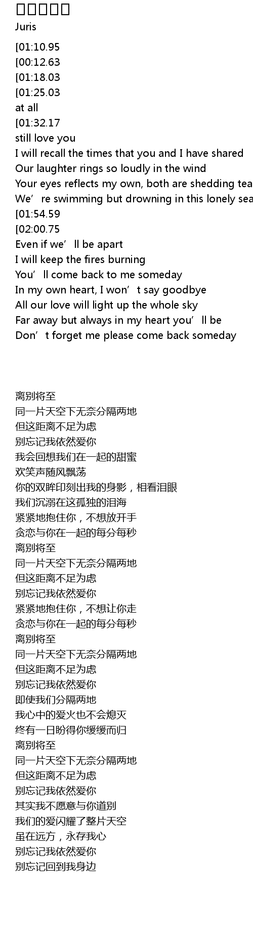 | [00:21.51][01:32.17][02:28.65][03:09.22][03:37.44] | Don' t forget me ' cause I still love you |
