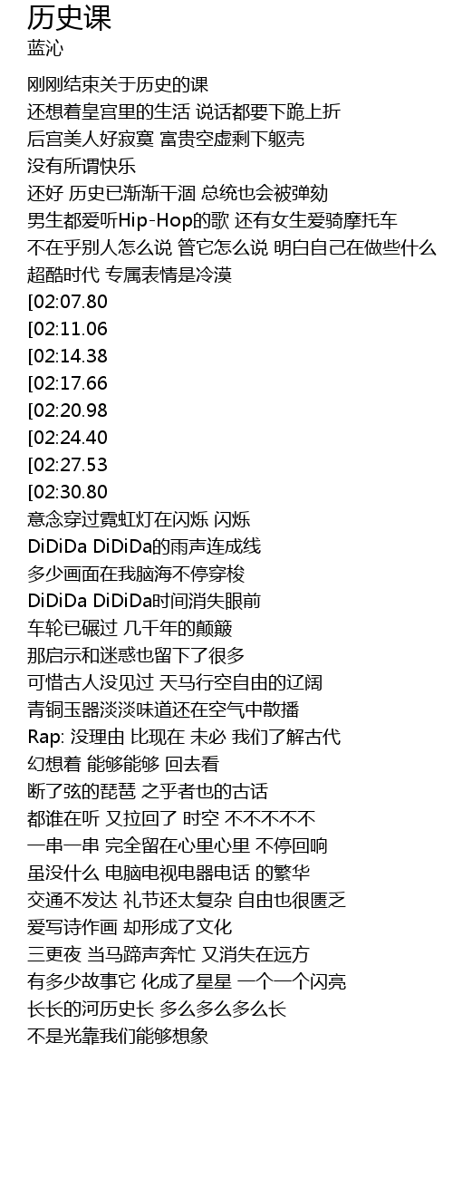 | [02:33.98] | Rap: 没理由 比现在 未必 我们了解古代 |