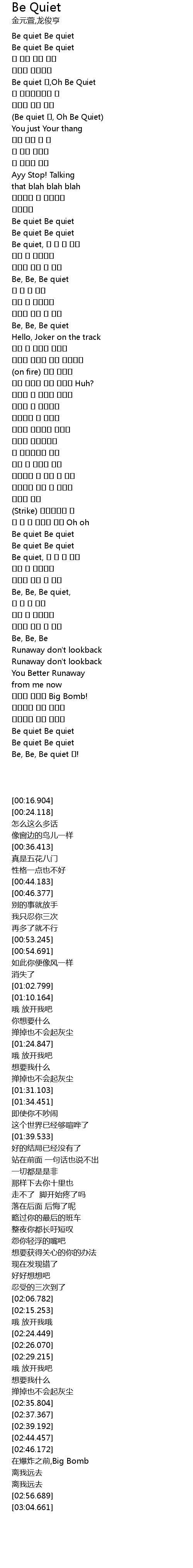 | (Be quiet 쉿, Oh Be Quiet) | |