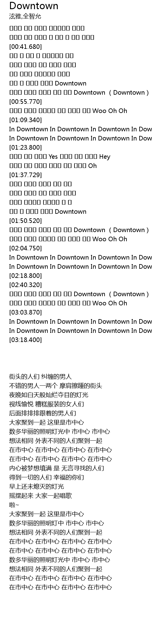 | [01:48.400] | 모두 다 모이는 여기는 Downtown |