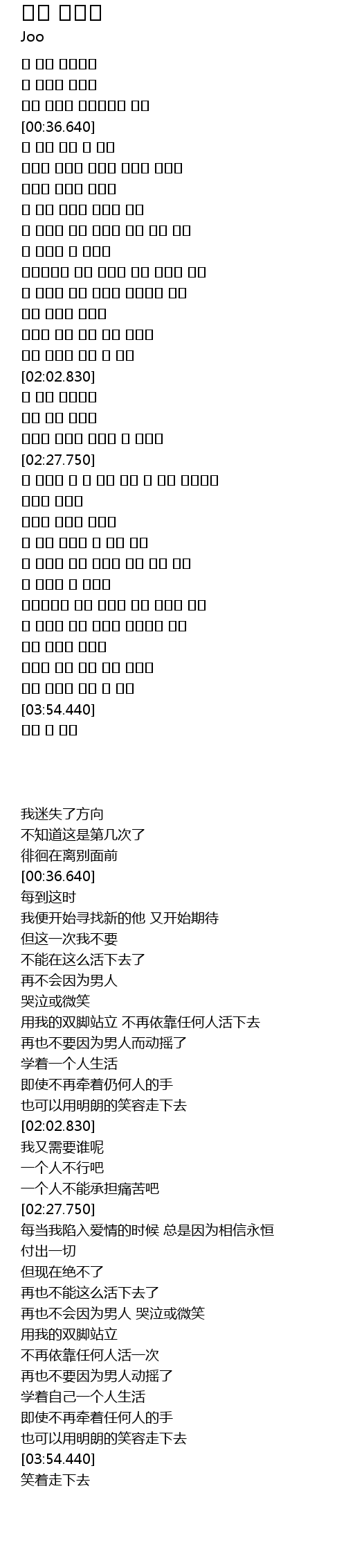 | [01:20.430] | 누구에게도 다신 기대지 않고 살아가 볼래 |