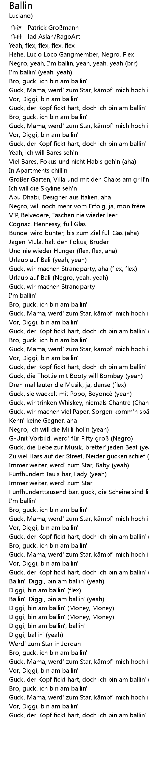 | [02:25.51] | Ballin', Diggi, bin am ballin' (yeah) |