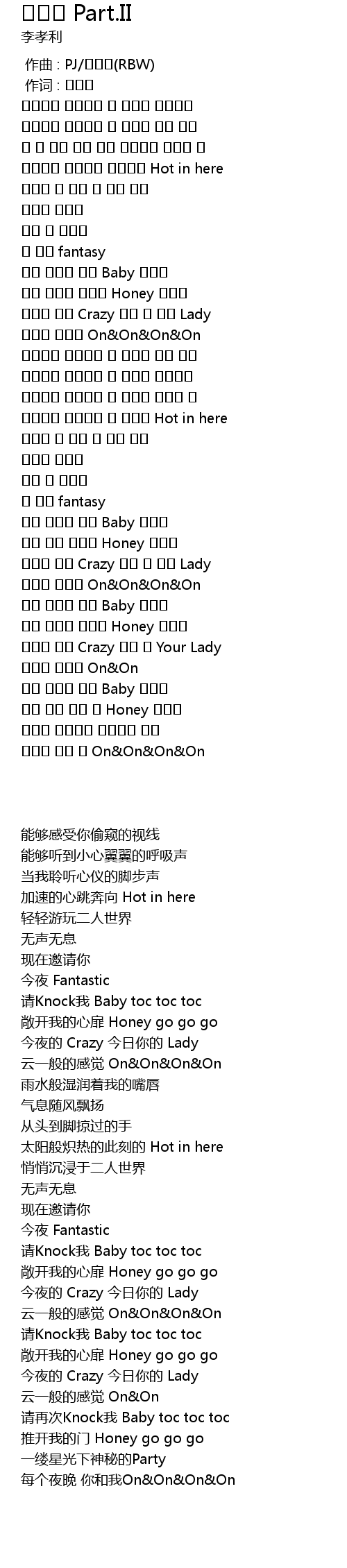 | [01:47.82] | 나의 맘을 열어줘 Honey 꼭꼭꼭 |
