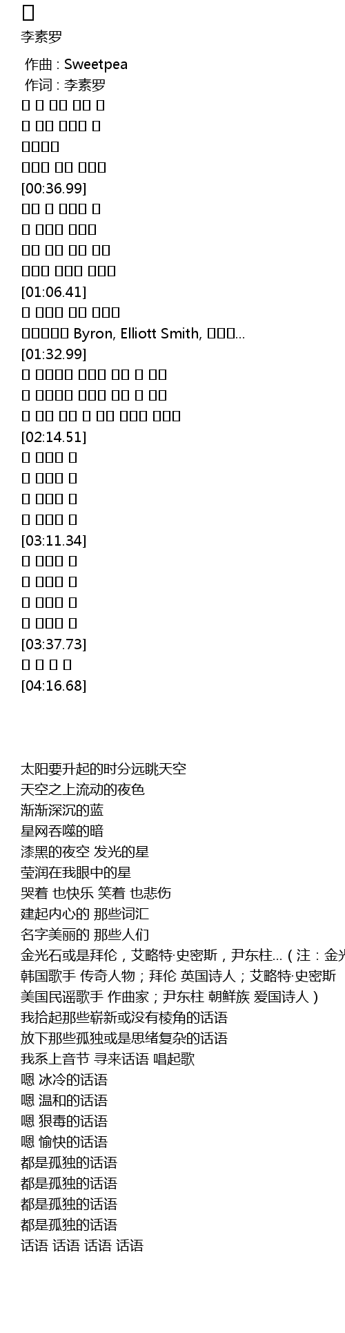 | [01:21.32] | 김광석이나 Byron, Elliott Smith, 윤동주... |
