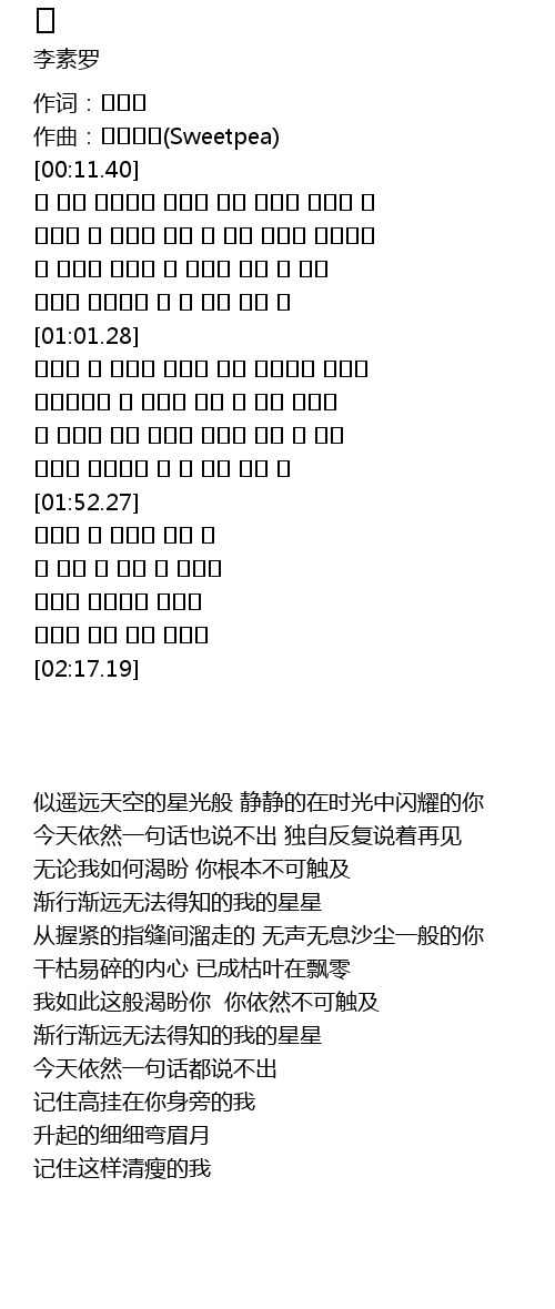 | [01:40.16] | 갈수록 멀어지는 알 수 없는 나의 별 |