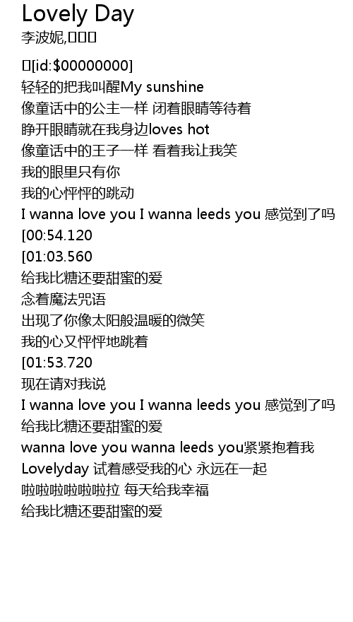 | [02:43.800] | Lovelyday 试着感受我的心 永远在一起 |