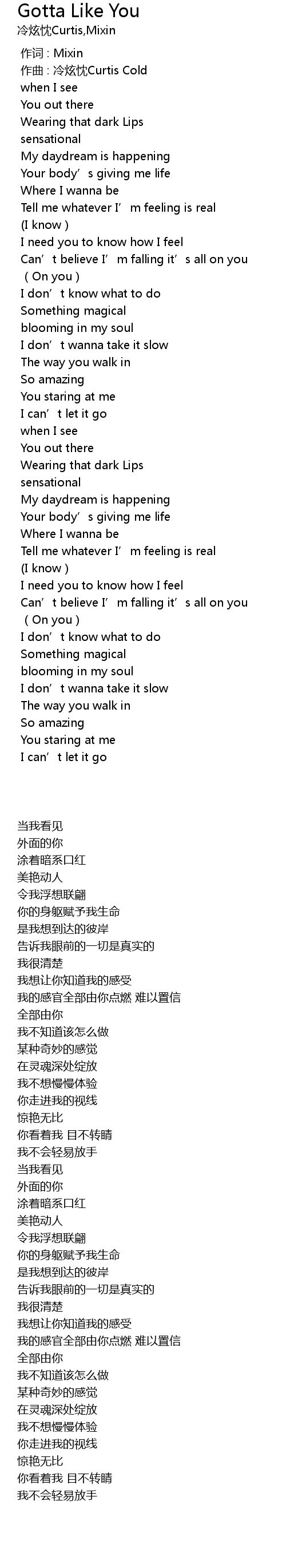 | [00:00.000] | 作词 : Mixin |