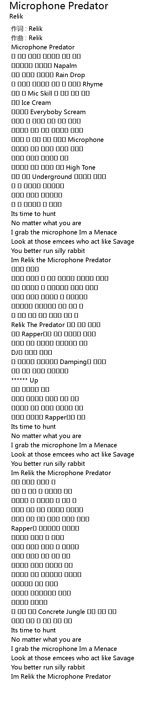 | [02:02.980] | Relik The Predator 무대 위에 포식자 |
