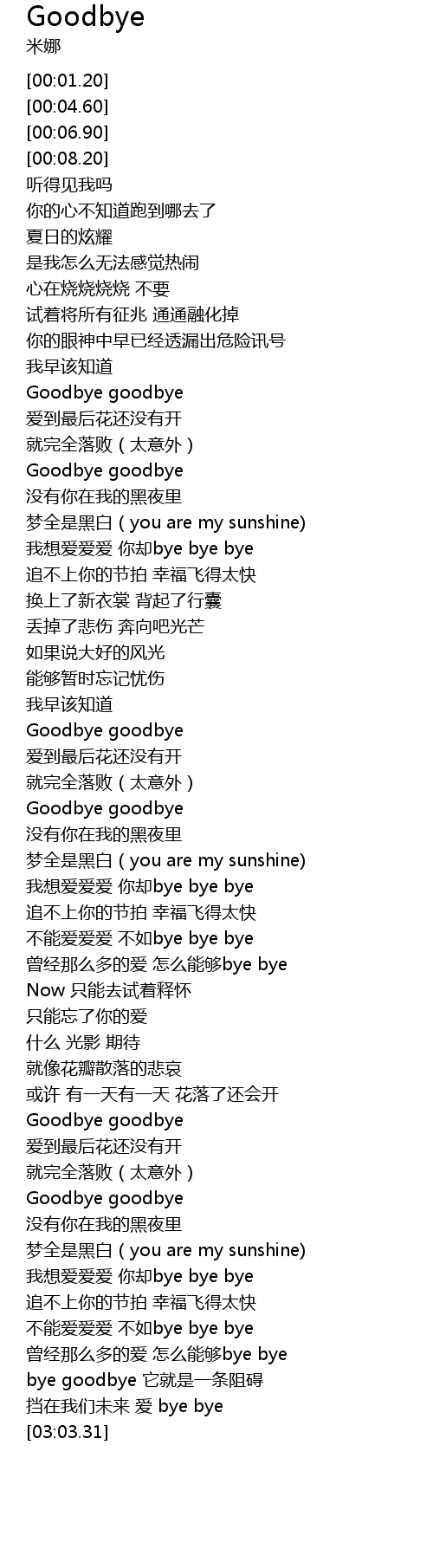 | [00:41.24] | Goodbye goodbye |