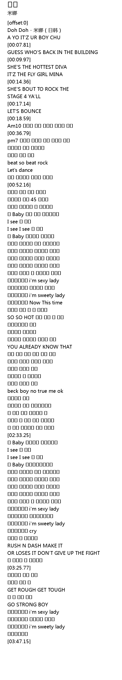 | [00:01.86] | Doh Doh - 米娜(日韩) |