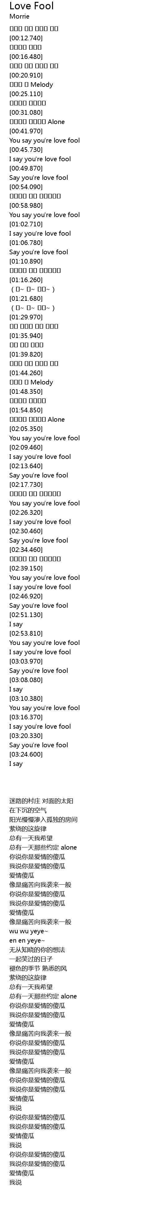 | [03:00.260] | I say you' re love fool |