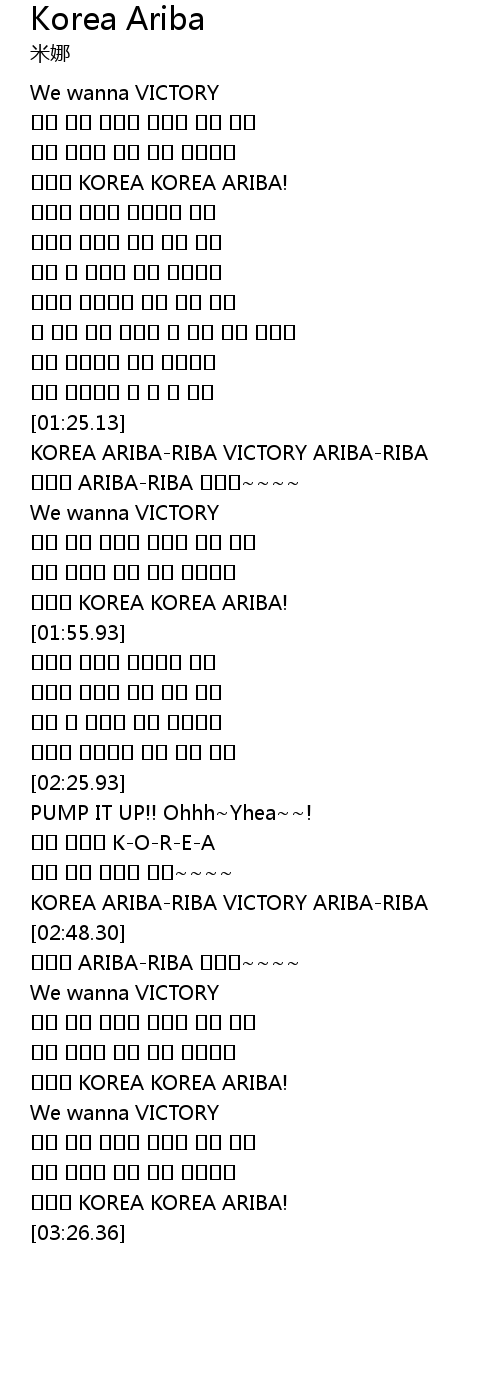 | [01:25.73] | KOREA ARIBARIBA VICTORY ARIBARIBA |