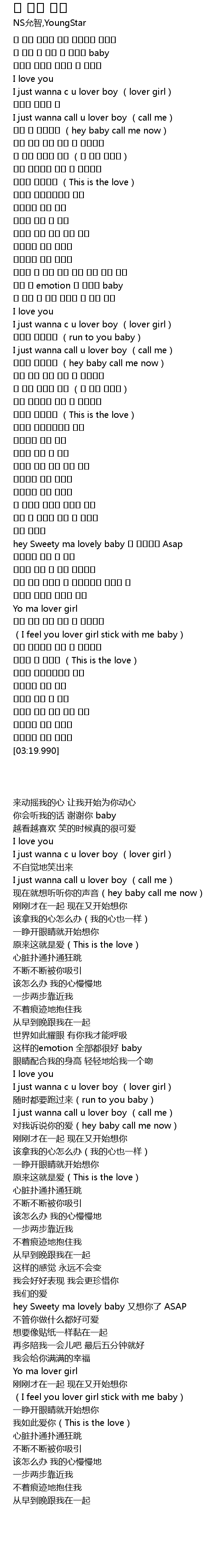 | [00:38.440] | I just wanna call u lover boy (call me) |