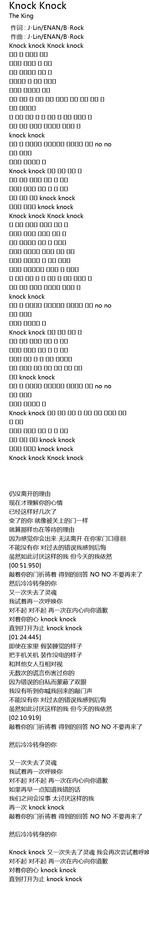 | [03:18.110] | 너의 맘에 대고 knock knock |