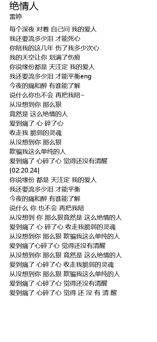 | [03:11.78] | 从没想到 你 那么狠竟然是 这么绝情的人 |