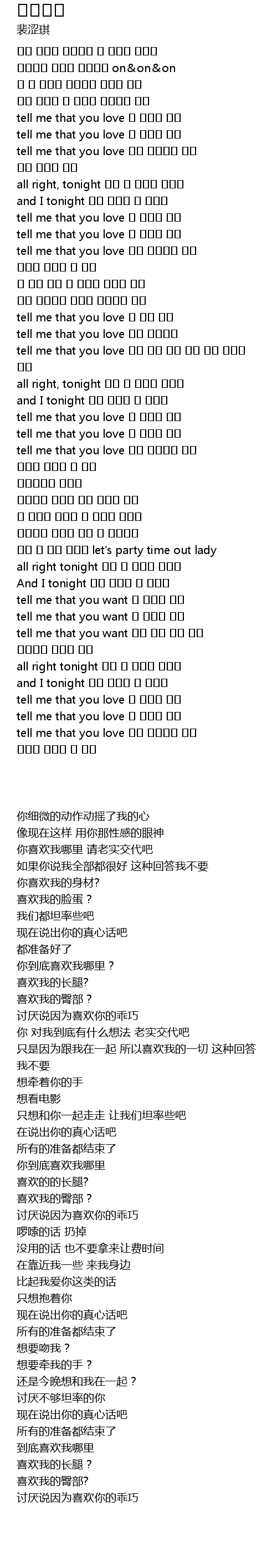 | [02:00.180] | tell me that you love 내 다리가 좋아 |