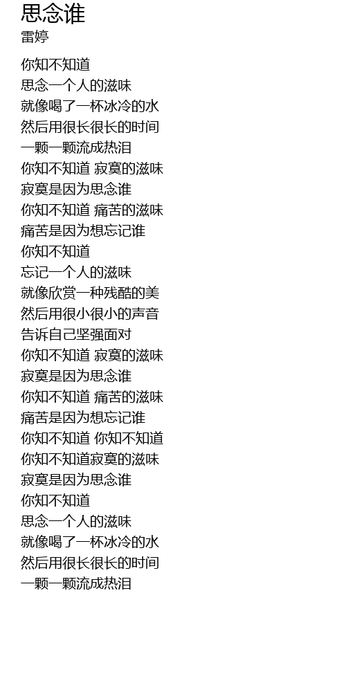 | [00:29.87] | 思念一个人的滋味 |