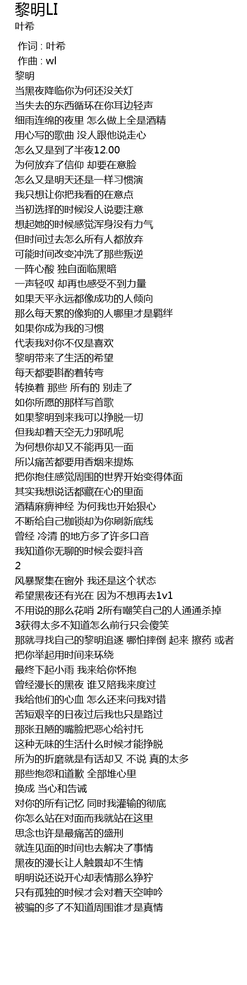 | [00:00.000] | 作词 : 叶希 |