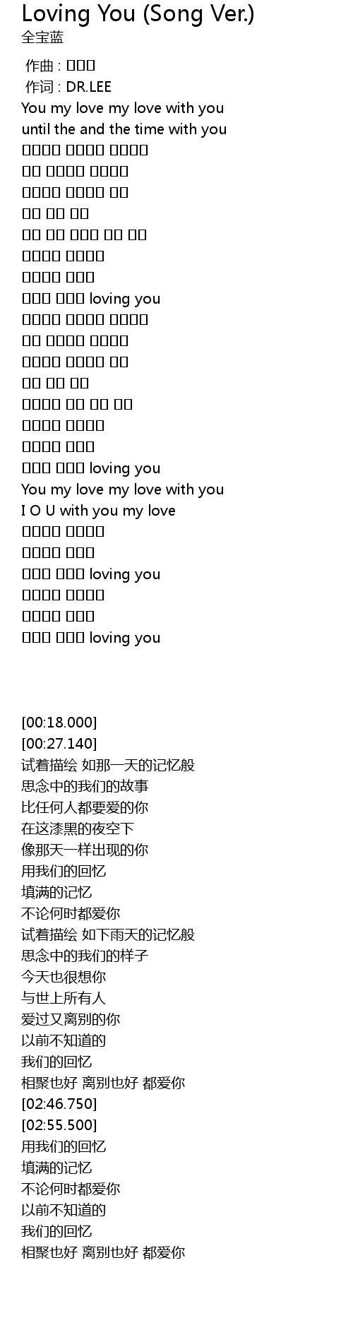 | [00:01.00] | 作词 : DR.LEE |