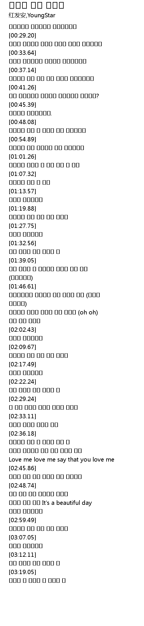 | [02:39.93] | 살며시 안아줄래 먼저 내게 고백해 줄래 |
