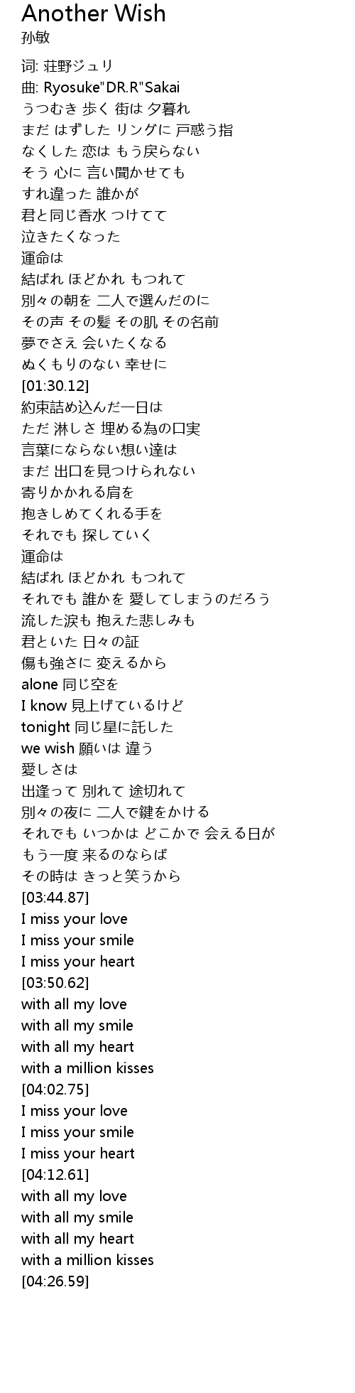 | [03:26.88] | それでも いつかは どこかで 会える日が |
