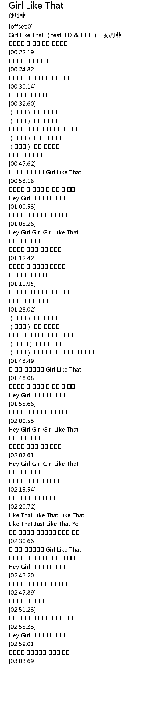 | [00:00.56] | Girl Like That (feat. ED & 송화영) - 孙丹菲 |
