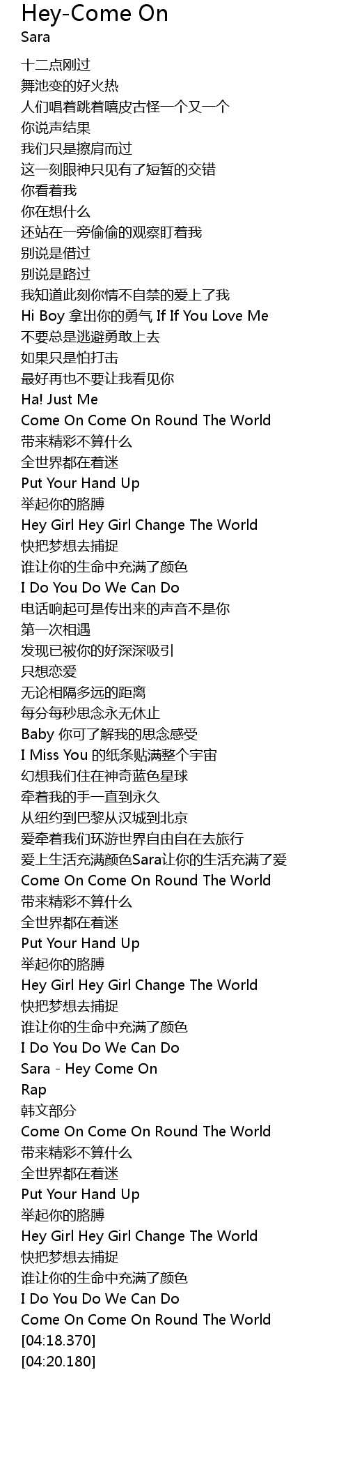 | [02:29.420] | Hey Girl Hey Girl Change The World |