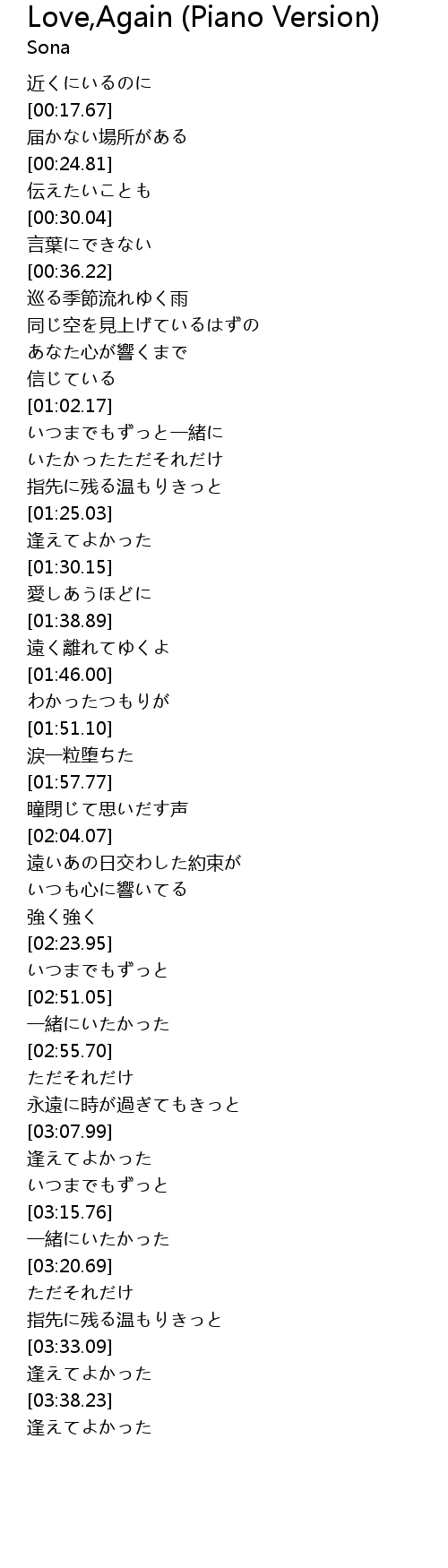 | [01:58.31] | 瞳閉じて思いだす声 |