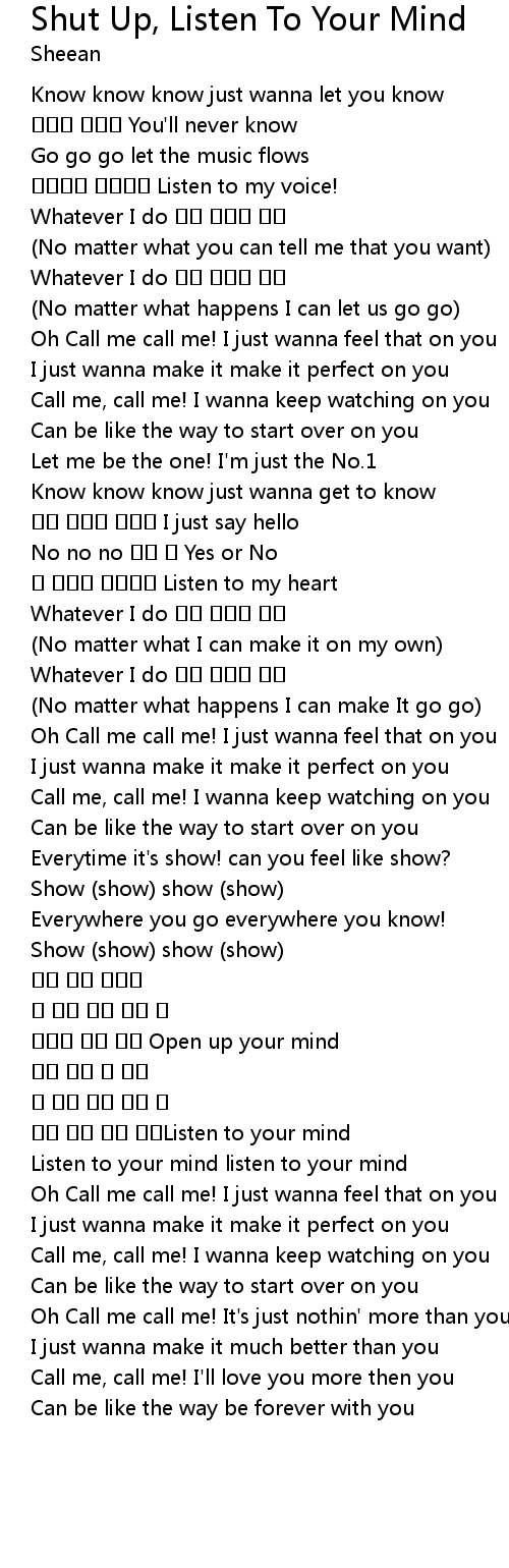 | [02:25.21] | 가만히 있지 말고 Open up your mind |