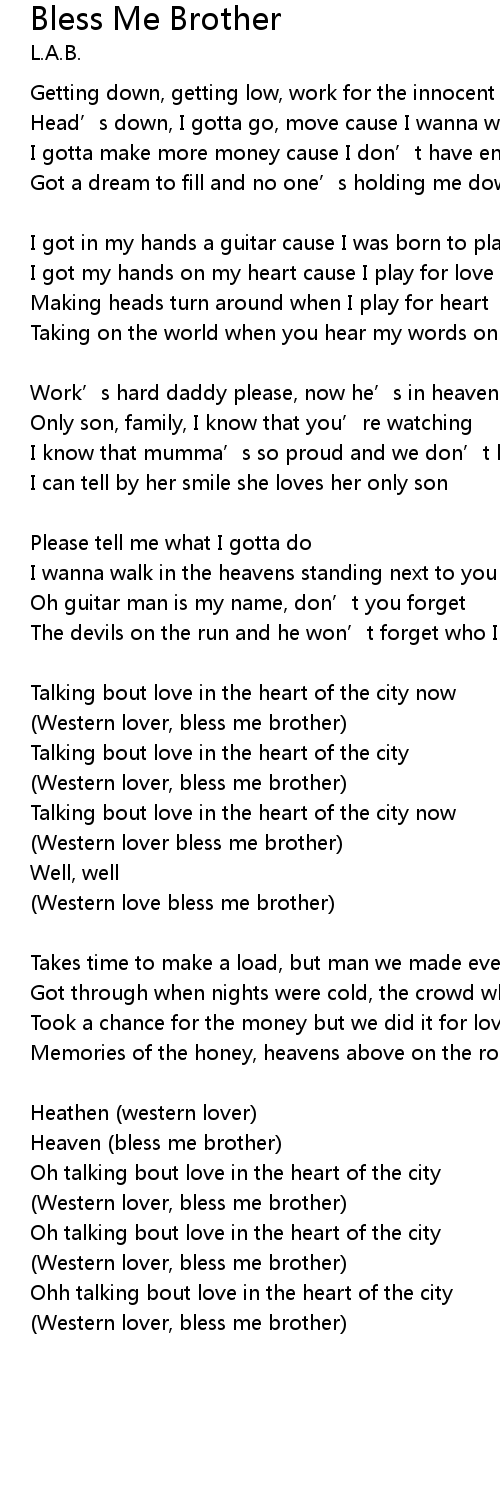 | Western lover, bless me brother |