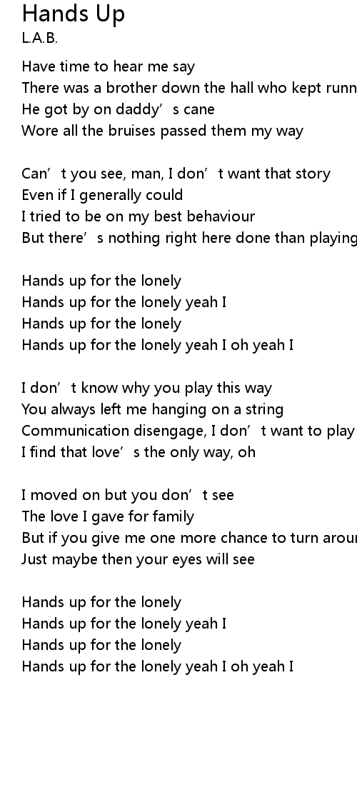 | Hands up for the lonely yeah I oh yeah I |