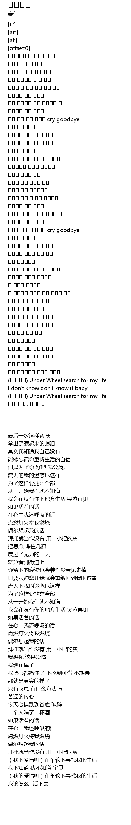 | [03:35.01] | (내 사랑아) Under Wheel search for my life |