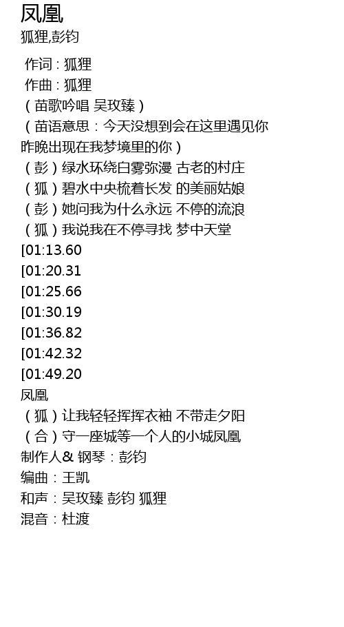 | [01:55.99] | 凤凰 |