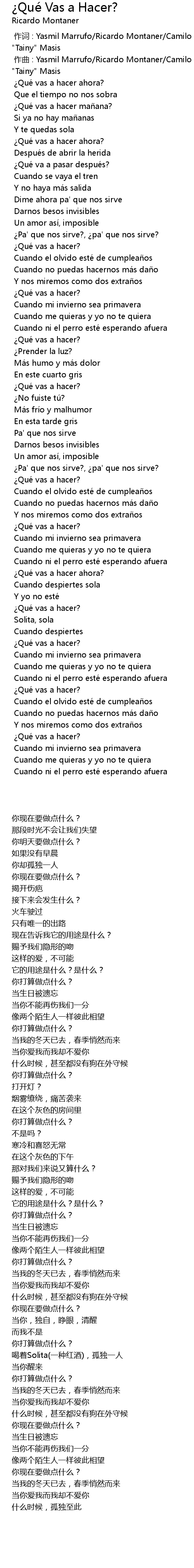 | [00:00.000] | 作词 : Yasmil Marrufo/Ricardo Montaner/Camilo Echeverry/Marco "Tainy" Masis |