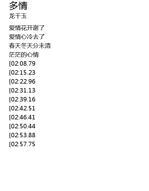 | [00:58.43][02:08.79] | 多情人心碎了 |