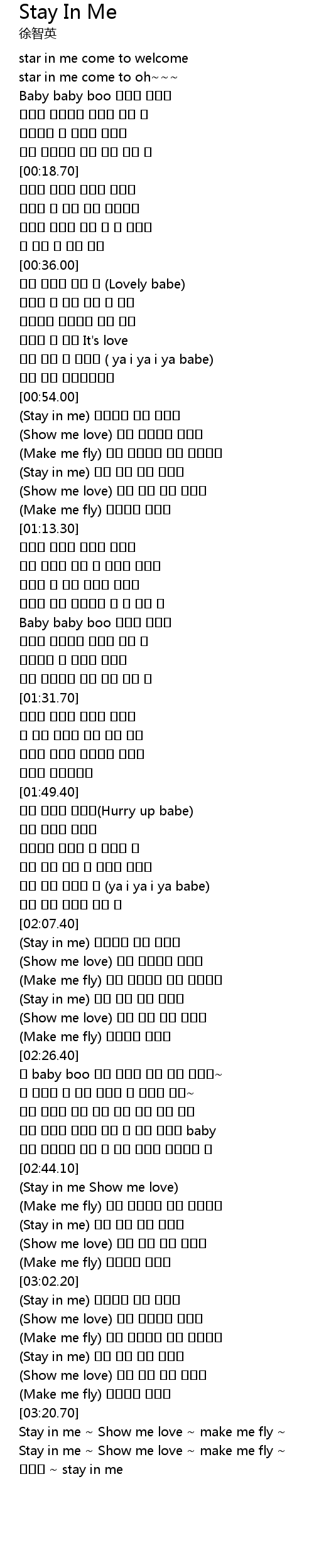 | [03:21.70] | Stay in me ~ Show me love ~ make me fly ~ |