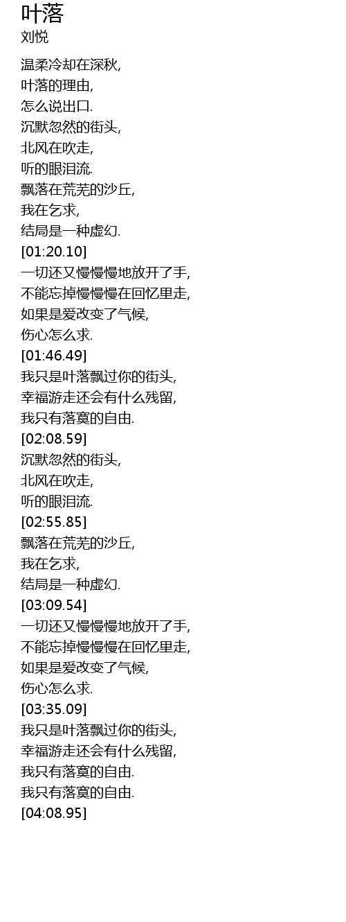 | [01:46.58] | 我只是叶落飘过你的街头, |