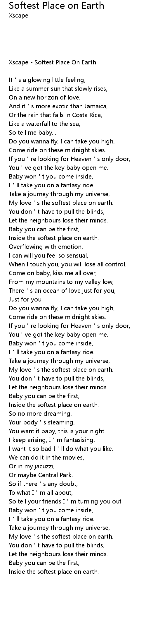 | [01:26.34] | My love's the softest place on earth. |